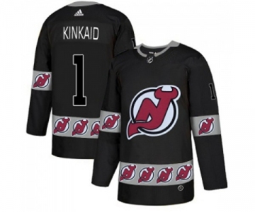 New Jersey Devils #1 Keith Kinkaid Authentic Black Team Logo Fashion Hockey Jersey
