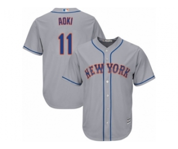 New York Mets #11 Norichika Aoki Replica Grey Road Cool Base MLB Jersey