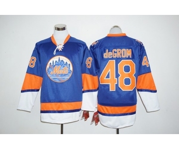 New York Mets #48 Jacob DeGrom Blue Long Sleeve Stitched MLB Jersey