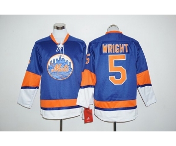 New York Mets #5 David Wright Blue Long Sleeve Stitched MLB Jersey