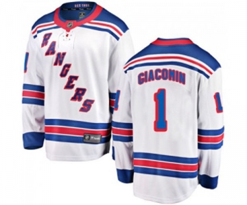 New York Rangers #1 Eddie Giacomin Fanatics Branded White Away Breakaway NHL Jersey