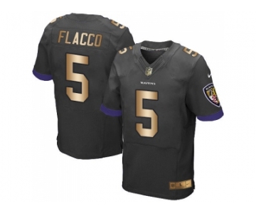 Nike Baltimore Ravens #5 Joe Flacco Black Alternate Men's Stitched NFL New Elite Gold Jersey