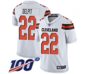 Nike Browns #22 Grant Delpit White Men's Stitched NFL 100th Season Vapor Untouchable Limited Jersey