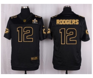 Nike Green Bay Packers #12 Aaron Rodgers Black Pro Line Gold Collection Jersey[Elite]