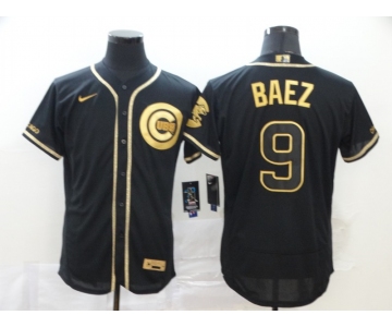 Nike Men's Chicago Cubs #9 Javier Baez Black Retro gold font Fashion Flex Base Authentic Baseball Jersey