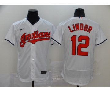 Nike Men's Cleveland Indians #12 Francisco Lindor White Home Flex Base Authentic Collection Baseball Jersey