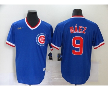 Nike Men's Mitchell and Ness Chicago Cubs #9 Javier Baez Authentic Blue Throwback MLB Jersey