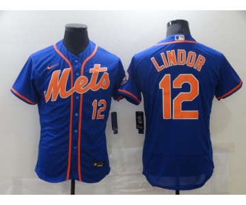 Nike Men's New York Mets #12 Francisco Lindor Blue Home Flex Base Authentic Collection Baseball Jersey
