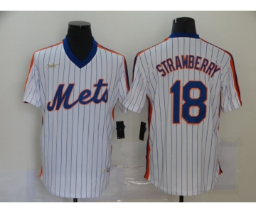 Nike Men's New York Mets #18 Darryl Strawberry Authentic White Retro Baseball Jersey