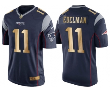 Nike New England Patriots #11 Julian Edelman Navy Blue Men's NFL Game 2016 Christmas Golden Edition Jersey
