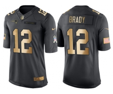 Nike New England Patriots #12 Tom Brady Anthracite 2016 Christmas Gold Men's NFL Limited Salute to Service Jersey