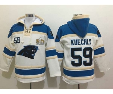 Nike Panthers #59 Luke Kuechly White Super Bowl 50 Player Pullover NFL Hoodie