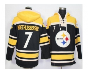 Men's Pittsburgh Steelers #7 Ben Roethlisberger Black Ageless Must-Have Lace-Up Pullover Hoodie