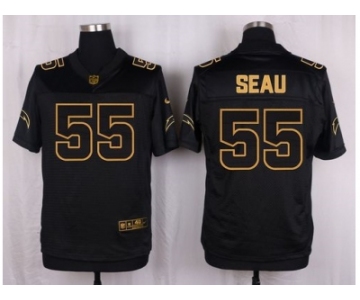 Nike San Diego Chargers #55 Junior Seau Black Pro Line Gold Collection Jersey[Elite]