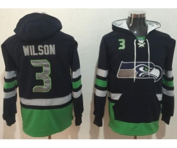 Nike Seahawks #3 Russell Wilson Navy Blue Green Name & Number Pullover NFL Hoodie