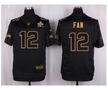 Nike Seattle Seahawks #12 Fan Black Pro Line Gold Collection Jersey[Elite]