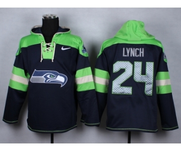 Nike Seattle Seahawks #24 Marshawn Lynch blue-green jerseys[pullover hooded sweatshirt]