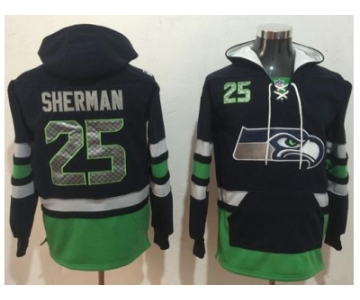 Nike Seattle Seahawks #25 Richard Sherman Navy Blue Green Name & Number Pullover NFL Hoodie