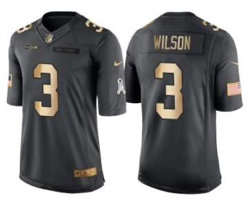 Nike Seattle Seahawks #3 Russell Wilson Anthracite 2016 Christmas Gold Men's NFL Limited Salute to Service Jersey