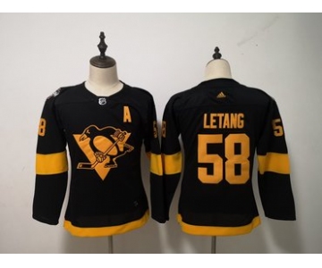 Penguins #58 Kris Letang Black Women 2019 NHL Stadium Series Adidas Jersey