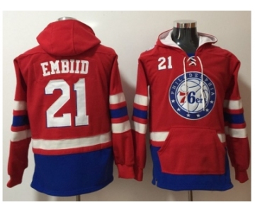 Philadelphia 76ers #21 Joel Embiid Red Name & Number Pullover NBA Hoodie
