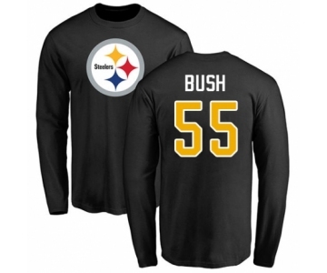 Pittsburgh Steelers #55 Devin Bush Black Name & Number Logo Long Sleeve T-Shirt