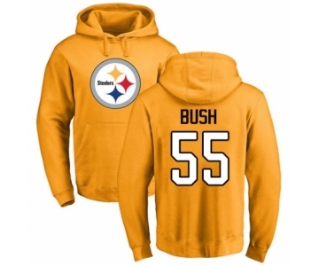 Pittsburgh Steelers #55 Devin Bush Gold Name & Number Logo Pullover Hoodie