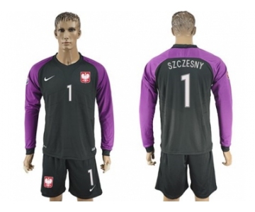 Poland #1 Szczesny Black Goalkeeper Long Sleeves Soccer Country Jersey