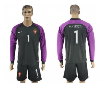 Portugal #1 Patricio Black Goalkeeper Long Sleeves Soccer Country Jersey