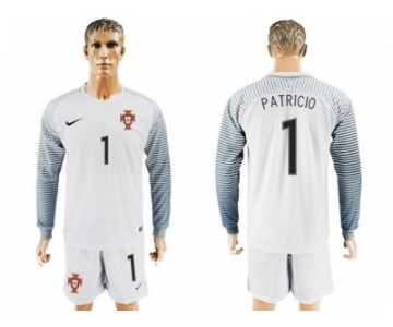 Portugal #1 Patricio White Goalkeeper Long Sleeves Soccer Country Jersey