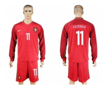 Portugal #11 Vierinha Home Long Sleeves Soccer Country Jersey