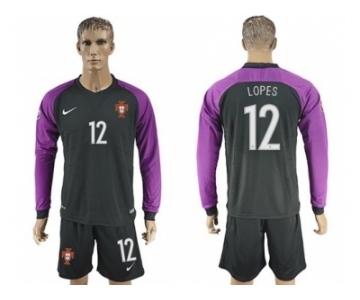 Portugal #12 Lopes Black Goalkeeper Long Sleeves Soccer Country Jersey