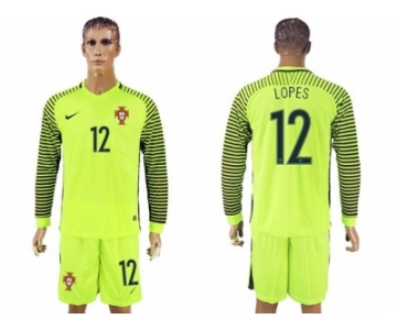 Portugal #12 Lopes Green Long Sleeves Goalkeeper Soccer Country Jersey