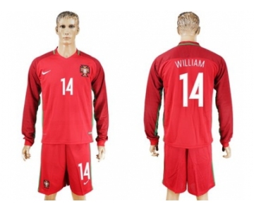 Portugal #14 William Home Long Sleeves Soccer Country Jersey