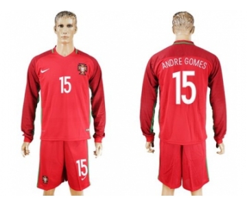 Portugal #15 Andre Gomes Home Long Sleeves Soccer Country Jersey