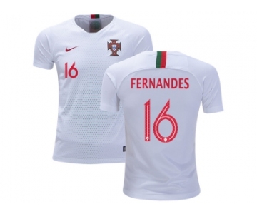 Portugal #16 Fernandes Away Kid Soccer Country Jersey