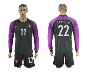 Portugal #22 Carvalho Black Goalkeeper Long Sleeves Soccer Country Jersey