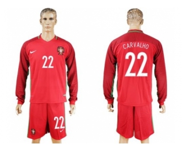 Portugal #22 Carvalho Home Long Sleeves Soccer Country Jersey