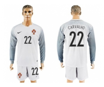 Portugal #22 Carvalho White Goalkeeper Long Sleeves Soccer Country Jersey