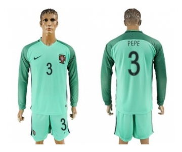 Portugal #3 Pepe Away Long Sleeves Soccer Country Jersey