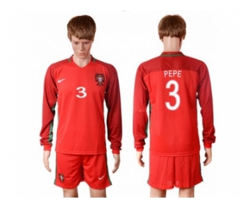 Portugal #3 Pepe Home Long Sleeves Soccer Country Jersey