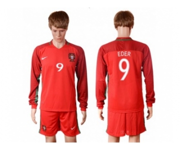 Portugal #9 Eder Home Long Sleeves Soccer Country Jersey