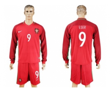 Portugal #9 Eser Home Long Sleeves Soccer Country Jersey