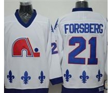 Quebec Nordiques #21 Peter Forsberg White CCM Throwback Stitched Hockey Jersey