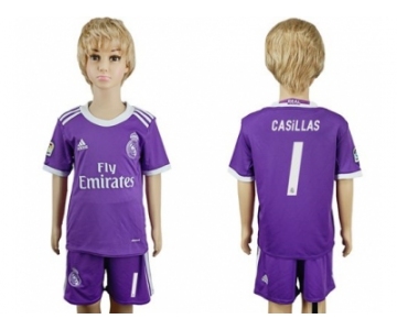 Real Madrid #1 Casillas Away Kid Soccer Club Jersey