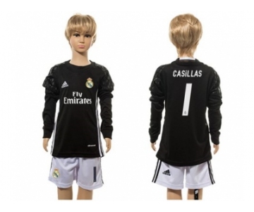 Real Madrid #1 Casillas Black Goalkeeper Long Sleeves Kid Soccer Club Jersey