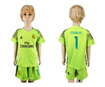 Real Madrid #1 I.Casillas Shiny Green Goalkeeper Kid Soccer Club Jersey