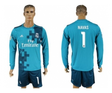 Real Madrid #1 Navas Sec Away Long Sleeves Soccer Club Jersey