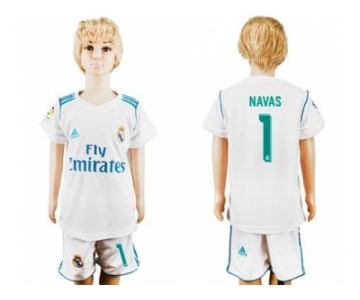 Real Madrid #1 Navas White Home Kid Soccer Club Jersey