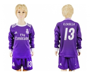 Real Madrid #13 K.Casilla Away Long Sleeves Kid Soccer Club Jersey